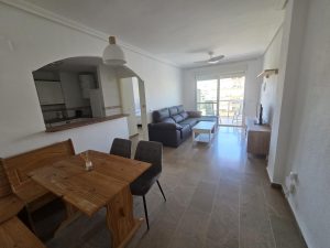 Descubre el estilo de vida costero que siempre has soñado en este excepcional apartamento, ubicado a tan solo 300 metros de la playa. Situado en una sexta planta con ascensor, disfrutarás de unas vistas inmejorables y abundante luz natural. Este inmueble cuenta con un salón comedor amplio y acogedor ideal para compartir momentos inolvidables con familia y amigos. Sus tres amplios dormitorios ofrecen comodidad y privacidad, mientras que la cocina equipada asegura que tengas todo lo necesario para preparar deliciosas comidas después de un día bajo el sol. Además, podrás relajarte junto a la piscina comunitaria o tomar el aire fresco en tu propia terraza privada; cada rincón ha sido diseñado pensando en tu bienestar. La ubicación es perfecta: cerca encontrarás supermercados, estaciones de tren y todos los servicios necesarios para facilitarte la vida diaria sin renunciar al encanto del mar Mediterráneo. No pierdas esta oportunidad única; solicita ya tu visita a este lugar privilegiado donde tus sueños se hacen realidad.