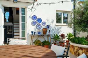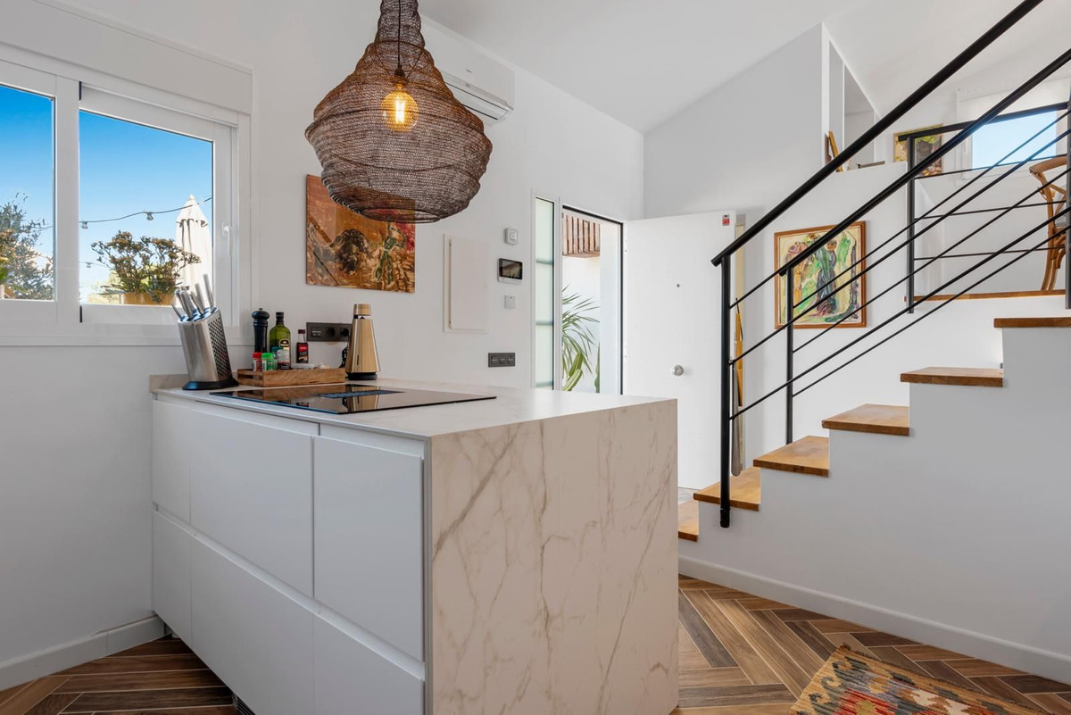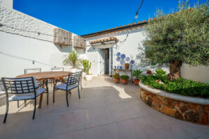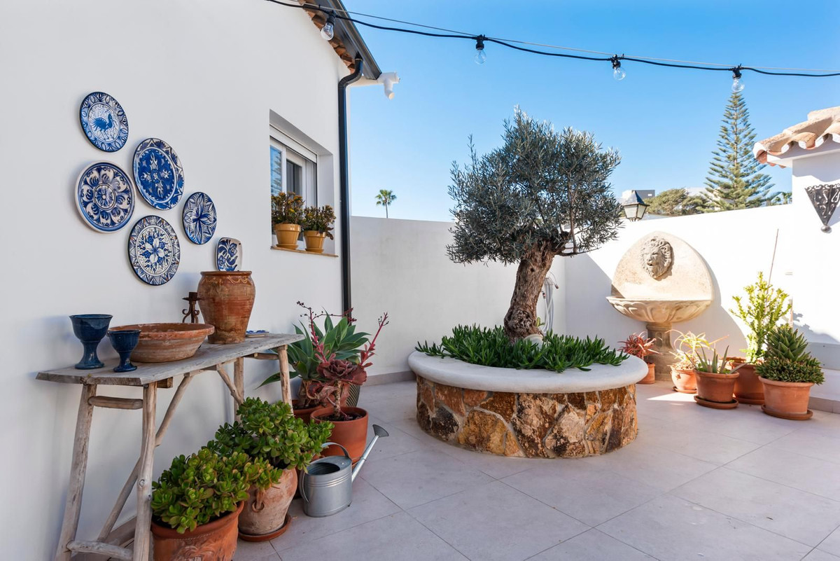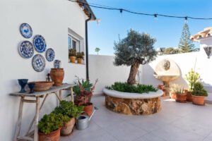 A su llegada, se le da la bienvenida a través de un patio impresionantemente escenificado, centrado alrededor de un majestuoso olivo, creando un ambiente sereno y acogedor. Este magnífico espacio al aire libre está diseñado para la vida al aire libre, con una barbacoa y zona de comedor al aire libre, una estación de preparación dedicada, una fuente encantadora, y una exquisita decoración que incluye exuberantes plantas en maceta, auténticos platos andaluces montados en la pared, y piezas únicas hechas a mano.