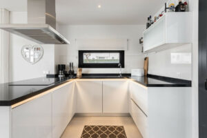 En la entrada, nos recibe un plano abierto y luminoso donde la cocina y el salón se fusionan en un espacio social y acogedor. Los grandes ventanales proporcionan un fantástico flujo de luz y crean un espacio encantador al tiempo que difuminan los límites entre el interior y el exterior. Desde el salón se accede directamente a una hermosa terraza orientada al sur, perfecta para relajarse bajo el sol o disfrutar de cenas acogedoras al cielo abierto. En la planta de entrada también hay un práctico aseo de invitados.