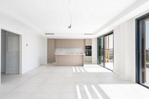 La propiedad cuenta con tres amplios dormitorios y dos baños completos, uno de ellos en suite, además de un aseo para invitados. Su diseño interior abarca 141,99 m² y se complementa con una terraza de 28,47 m², perfecta para disfrutar de vistas al mar y al jardín privado. Detalles como el sistema de domótica, armarios empotrados y suelos de porcelana garantizan un estilo contemporáneo y práctico. En los baños, además, se ha incorporado calefacción por suelo radiante para mayor confort.
