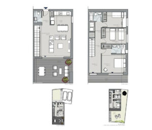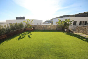En la planta baja, encontrarás la máxima comodidad con tres luminosos dormitorios y dos baños completos (uno en suite). Todos los dormitorios dan directamente a tu generoso jardín de más de 190 m², lo que proporciona una perfecta integración entre el interior y el exterior. Incluso disfrutarás de vistas al mar desde el dormitorio principal. Como residente, disfrutará de fantásticas comodidades, como una piscina comunitaria, un gimnasio bien equipado y un práctico espacio de coworking. La practicidad está garantizada con dos amplias plazas de aparcamiento exterior y una entrada personalizable.