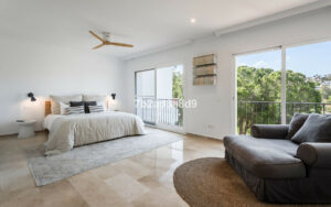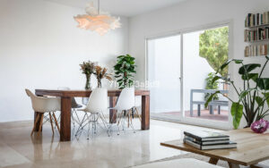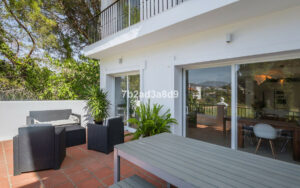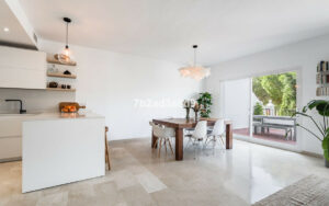 Amplia casa adosada familiar de esquina de 4 niveles ubicada en Las Encinas, un complejo cerrado en primera línea de golf en La Quinta, Benahavís. Consta, en el nivel principal: cocina de planta abierta totalmente amueblada y equipada; salón y comedor con acceso a una terraza que ofrece preciosas vistas al golf de La Quinta; dormitorio de invitados; aseo de invitados.