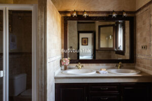 La propiedad incluye un pasillo que conduce a un baño grande y lujoso, con doble lavabo, bañera y ducha independiente. Cuatro amplias habitaciones, cada una con armarios empotrados, ofrecen mucho espacio. La suite principal destaca por su excepcional luz natural y su ventilación bien diseñada, creando un retiro tranquilo en el hogar.