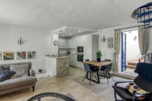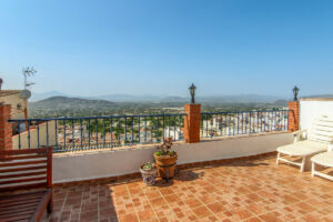 Una escalera de caracol lleva a la planta superior a los dormitorios y baños. Una planta más arriba, y disfruta de su azotea privada con impresionantes vistas al valle del Guadalhorce y al pueblo. Cuarto de lavado/trastero muy práctico en la azotea con lavadora.