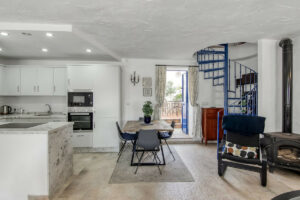 El patio es una extensión ideal del salón-comedor. Ofrece un ambiente acogedor, con la cocina y los dos baños renovados. La propiedad cuenta con paneles solares y aire acondicionado en todas las habitaciones. Además, una hermosa chimenea en el salón para disfrutar de las acogedoras noches de invierno.