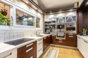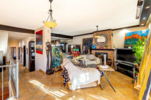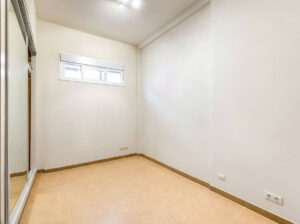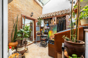 Junto al salón-comedor se encuentra una cocina grande, moderna y de alta calidad, equipada con electrodomésticos Bosch. El pasillo, largo y amplio, conduce al segundo dormitorio, también de buen tamaño, a un baño con ducha en la planta baja y a una sala adicional tipo atrio, que actualmente funciona como estudio de arte.
