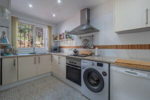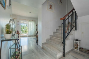 Un encantador porche de entrada da la bienvenida a un luminoso recibidor con aseo de invitados. La cocina totalmente equipada es elegante y funcional, mientras que el espacioso salón abierto con comedor independiente crea un espacio cálido y acogedor. Desde aquí, se accede a un hermoso invernadero con espectaculares vistas a las fuentes y a los impecables jardines comunitarios: el lugar perfecto para relajarse durante todo el año.