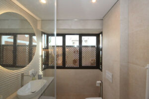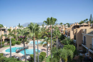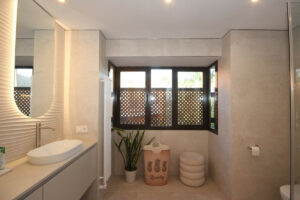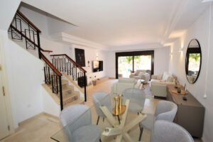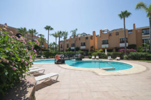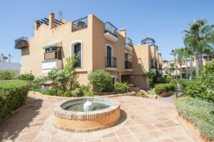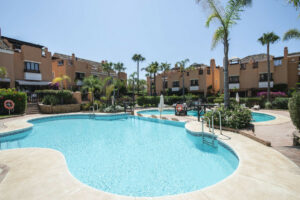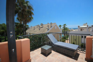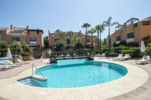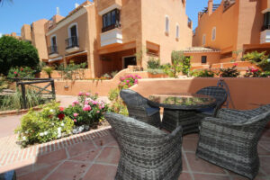 Esta casa adosada está situada a solo 100 m de la playa en Bahía de Marbella. Tiene 2 dormitorios y 2 baños, además de un aseo para invitados.
