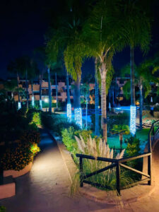 El complejo cuenta con una enorme zona de piscina con dos piscinas abiertas todo el año, tumbonas y sombrillas.