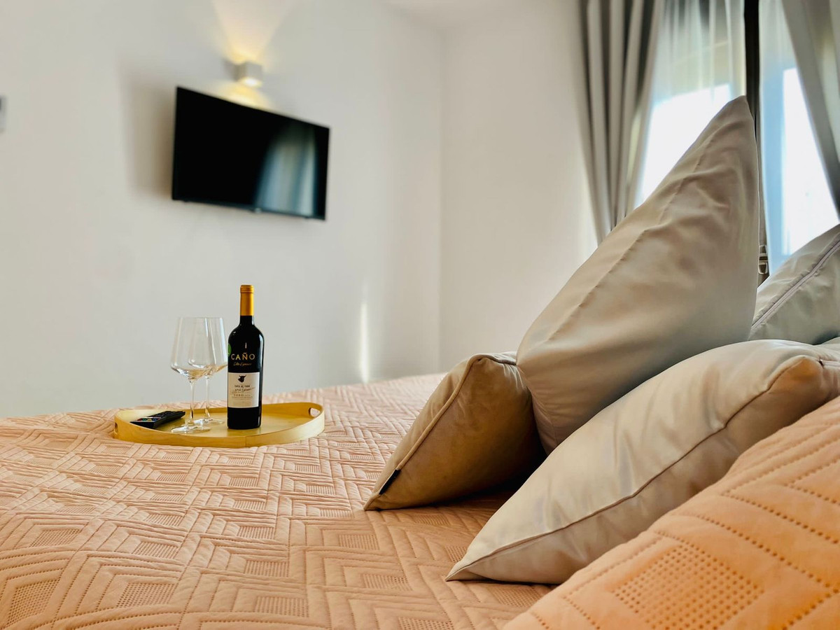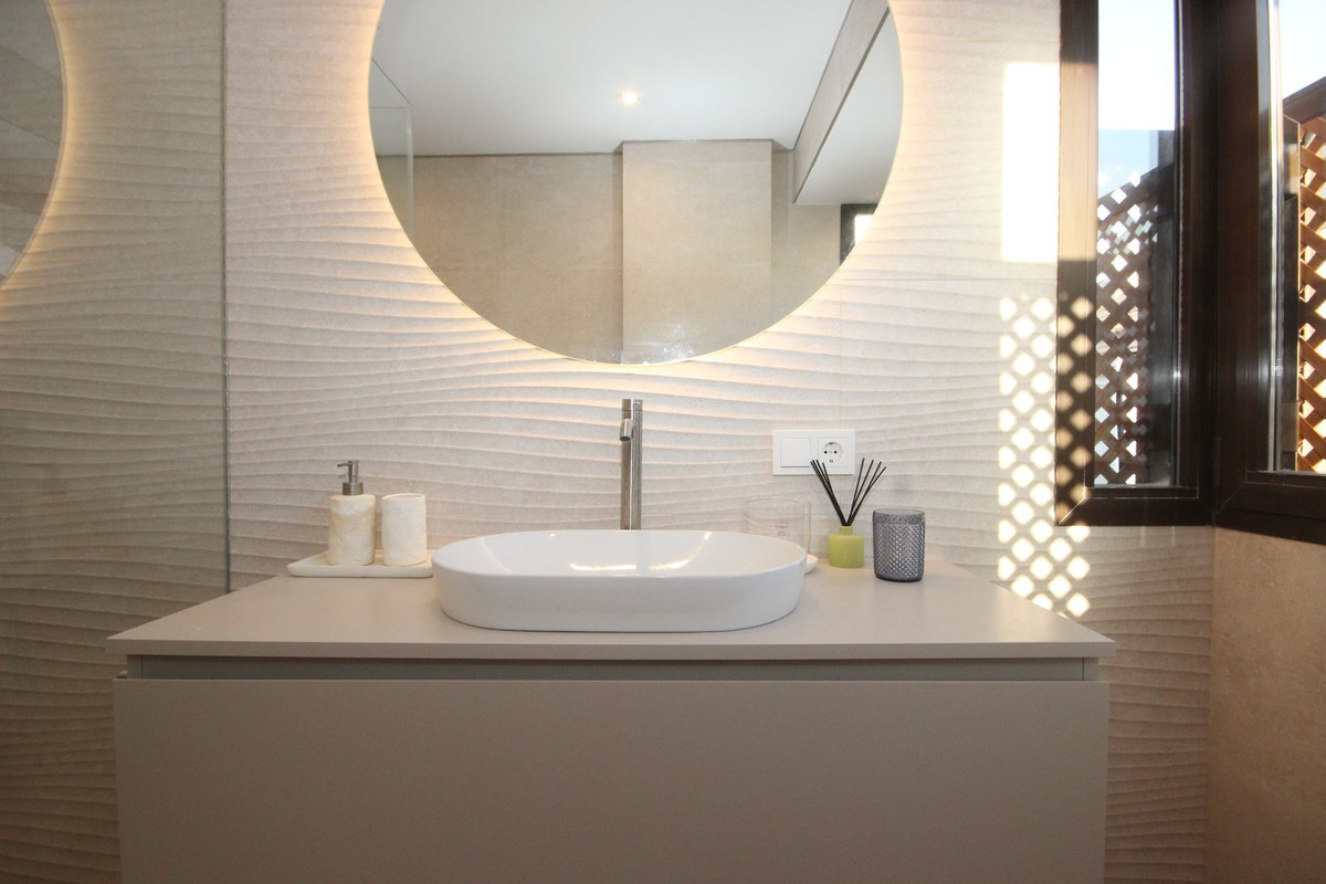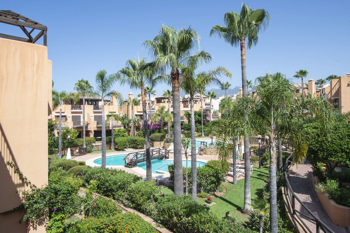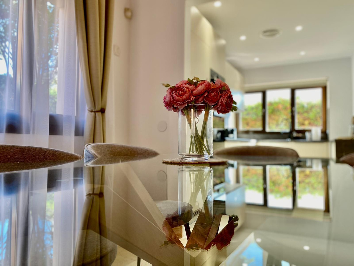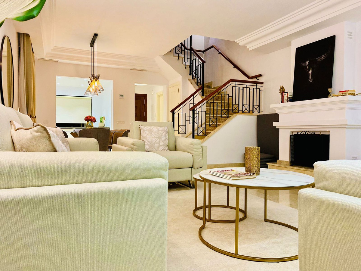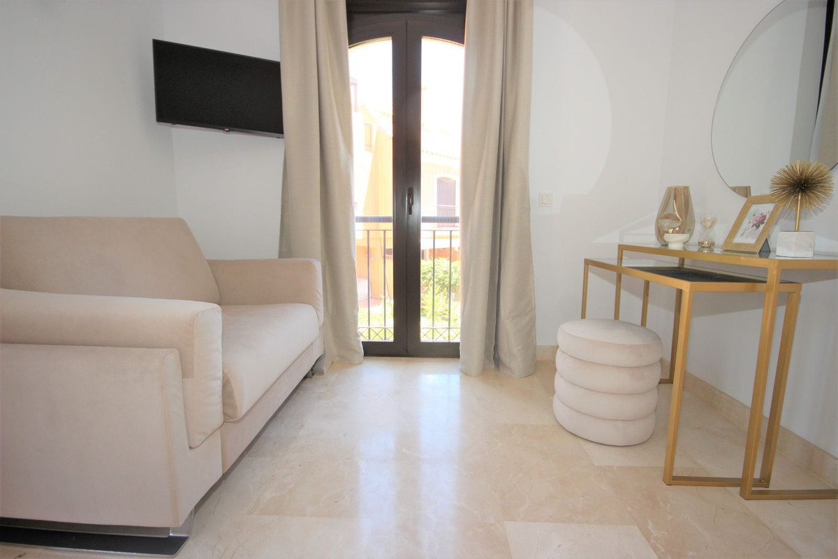 Esta casa adosada está situada a solo 100 m de la playa en Bahía de Marbella. Tiene 2 dormitorios y 2 baños, además de un aseo para invitados.