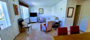 En el interior, la casa se abre a un salón amplio y luminoso que se extiende a lo largo de toda la casa. Grandes ventanales invitan a la luz natural y crean una conexión fluida con una segunda terraza exterior, un lugar ideal para cenar al aire libre, tomar un café por la mañana o disfrutar de tardes relajadas. Con opciones para comer tanto en el interior como en el exterior, esta casa se adapta a la perfección a su estilo de vida.