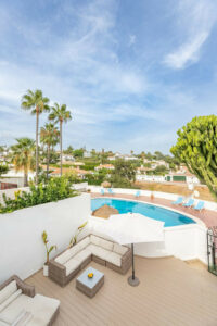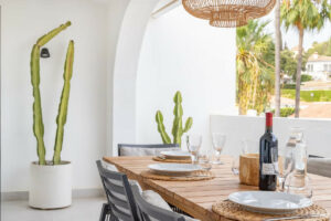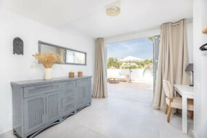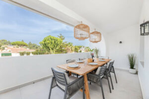 Marbella Este, centro de Elviria. Se vende fantástica y encantadora casa adosada renovada en Pueblo Sueco. Esta casa adosada se reformó completamente en 2018 y está decorada con mucho gusto en todas sus estancias. La propiedad tiene un aire moderno de alta calidad y está construida en dos plantas. Al entrar en la parcela, encontramos un acogedor patio oeste parcialmente cubierto. Está amueblado con tumbonas chillout y hay mucho espacio para comer al aire libre. Hay espectaculares cactus maduros y jardineras de fácil mantenimiento. Al entrar en la casa encontrará un práctico aseo para invitados a la derecha y la cocina totalmente equipada con todos los electrodomésticos necesarios. También en la cocina hay una acogedora ventana que da al patio delantero. El salón tiene grandes puertas plegables que dan a la terraza. En el salón hay una zona de TV con dos sofás de 3 plazas y otra zona con una bonita mesa redonda de comedor junto a la chimenea. Desde el salón se accede a una preciosa y espaciosa terraza cubierta con vistas a la piscina del club y a la zona residencial, con una mesa de 6 plazas perfecta para disfrutar del desayuno. Las escaleras nos llevan a la planta baja, donde encontramos un dormitorio de buen tamaño con otro dormitorio auxiliar que podría utilizarse como vestidor. Otro dormitorio con mucho espacio extra, con un escritorio y vestidor. Hay dos baños con amplias duchas (uno en suite) y un lavadero/trastero. Estas dos habitaciones dan acceso al patio de la planta baja, desde el que se puede acceder directamente al club de piscina privado. En el patio podrá encontrar una plataforma donde se puede relajar en las tumbonas y usar la ducha solar. Opcionalmente, se puede ser socio del club pagando una cuota anual. Hay aire acondicionado frio/calor marca Daikin, suelo radiante en los baños y fibra óptica de alta velocidad. Los vecinos son una mezcla de nacionalidades locales e internacionales. A 10 minutos andando llegamos a la mejor playa de Marbella y a 10 minutos en coche a la ciudad de Marbella. El aeropuerto de Málaga a menos de 45 minutos. También hay varios campos de golf de 18 hoyos, como Santa María Golf, Santa Clara, Río Real y Marbella Golf. Marbella se ha convertido en una marca en Europa y en todo el mundo, con 320 días de sol al año y un total de 2900 horas de sol. Elviria representa la esencia misma de la calidad de vida en la Costa del Sol. Está situada en un entorno natural único y cuenta con una fantástica oferta de servicios en las inmediaciones, entre los que se incluyen tres hoteles de cuatro y cinco estrellas: Don Carlos, Marriott y Estrella del Mar, campos de golf de renombre como Santa María y Green Hills, un restaurante con estrella Michelin, el club de playa Nikki Beach y una de las mejores playas de la costa, todo ello flanqueado por excelentes bares y restaurantes, supermercados y un mercadillo local todos los viernes y uno ecológico cada dos sábados. Además, hay Tenencia de Alcaldía, una consulta médica, una oficina de correos, una amplia oferta de colegios, incluidos colegios privados…todo ello a poca distancia. Se trata de una oportunidad única y la ubicación ideal tanto para una residencia permanente como para la casa de vacaciones de sus sueños.