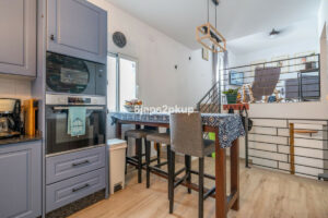 Los espacios interiores son amplios y luminosos, potenciados por la abundante luz natural que entra a través de sus numerosas ventanas gracias a su orientación en esquina. La cocina, completamente equipada con electrodomésticos de última generación, se integra perfectamente en un diseño de planta abierta que crea un ambiente acogedor, ideal tanto para relajarse como para disfrutar con invitados.
