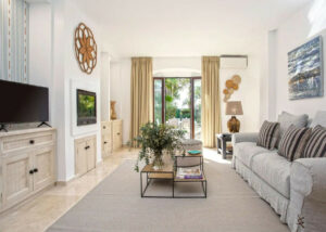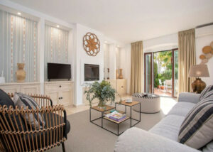 A tan solo unos pasos del mar, encantadora casa adosada totalmente reformada, situada en la exclusiva urbanización Laguna Beach, en Estepona.