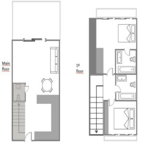 Distribuida en dos plantas, esta vivienda luminosa y acogedora cuenta con 2 dormitorios, 2 baños (uno en suite), aseo de invitados, varias terrazas y un jardín privado con acceso directo a la piscina comunitaria y una plaza de aparcamiento incluida.