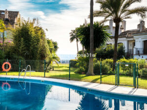 A pocos pasos del mar, esta hermosa casa adosada renovada se encuentra en la urbanización muy solicitada de Laguna Beach en Estepona.
