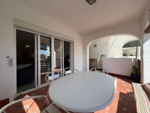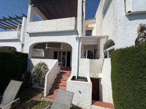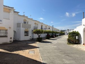 A solo 50 metros de la Playa del Moral, este encantador adosado andaluz se encuentra en la tranquila zona de Arroyo Vaquero, a menos de 5 minutos del puerto deportivo de Estepona.