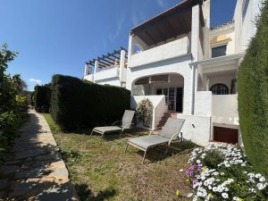 Adosado junto a la playa con jardín, vistas al mar y amplio sótano – Estepona
