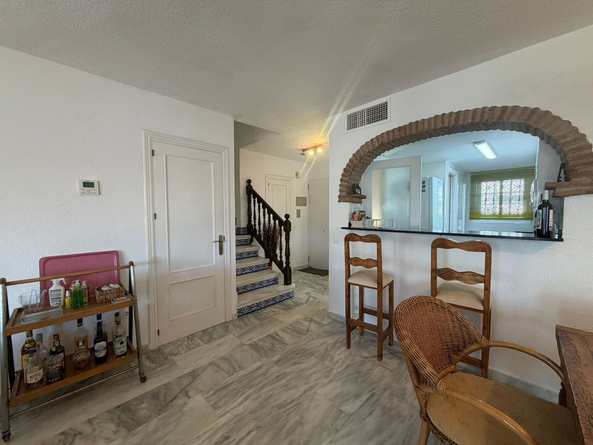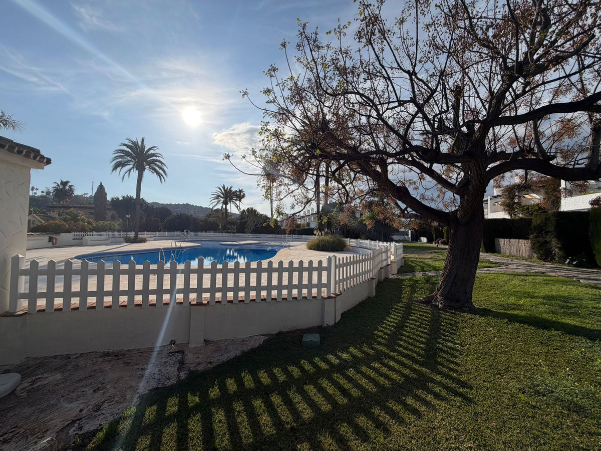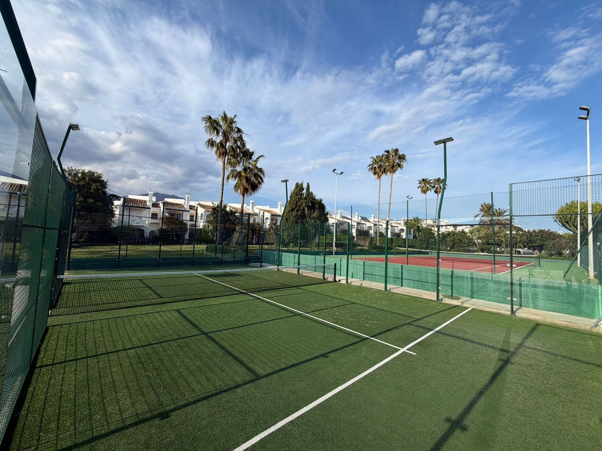 A solo 50 metros de la Playa del Moral, este encantador adosado andaluz se encuentra en la tranquila zona de Arroyo Vaquero, a menos de 5 minutos del puerto deportivo de Estepona.