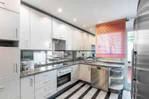 El diseño de la propiedad incluye dos amplios dormitorios y dos elegantes baños, complementados por un aseo de invitados. En su interior, el diseño de planta abierta maximiza la luz natural a través de ventanas expansivas, mientras que la zona de estar cuenta con una acogedora chimenea de gas para el confort durante todo el año. La cocina está totalmente equipada con electrodomésticos modernos y fluye sin problemas en el comedor y los espacios vivos, ofreciendo el ambiente perfecto para la vida entretenida o familiar. Al aire libre, las amplias terrazas ofrecen amplio espacio para comer, relajarse y remojar el sol mediterráneo.