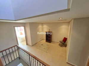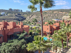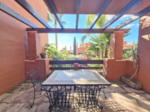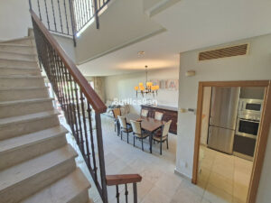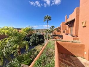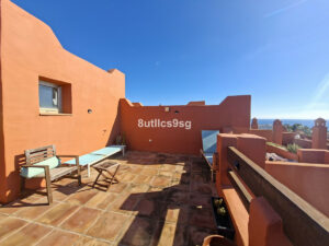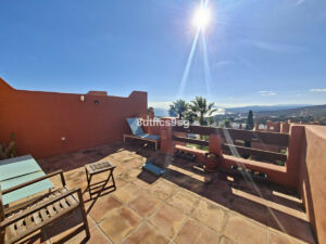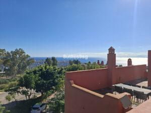 Casa adosada een Bahía de Las Rocas, a dos minutos de Sotogrande, con dos dormitorios con dos baños en suite (el principal con jacuzzi) y un aseo de invitados. Amplio salón con salida a la terraza y vistas al mar, Gibraltar y costa de África. Este adosado cuenta con tres plantas, con un sótano que se puede converitr en un dormitorio, salón de juegos, etc. planta baja, con salón, cocina complétamente equipada y baño de invitados, primera planta con dos dormitorios y subida a un gran solarium con impresionantes vistas. La propiedad cuenta con armarios empotrados, aire acondicionado frío/calor y cochera. La urbanización es cerrada, con bonitos jardines y piscinas para adultos y niños.