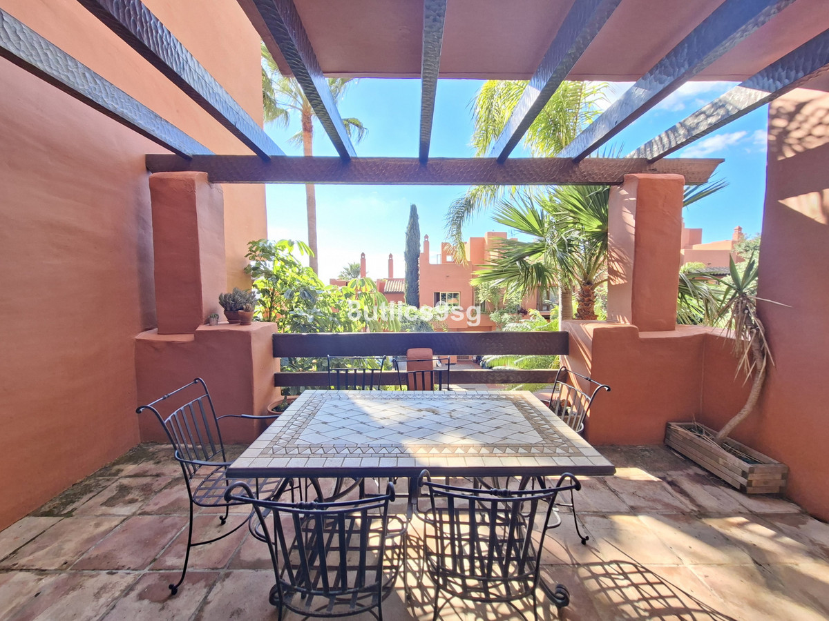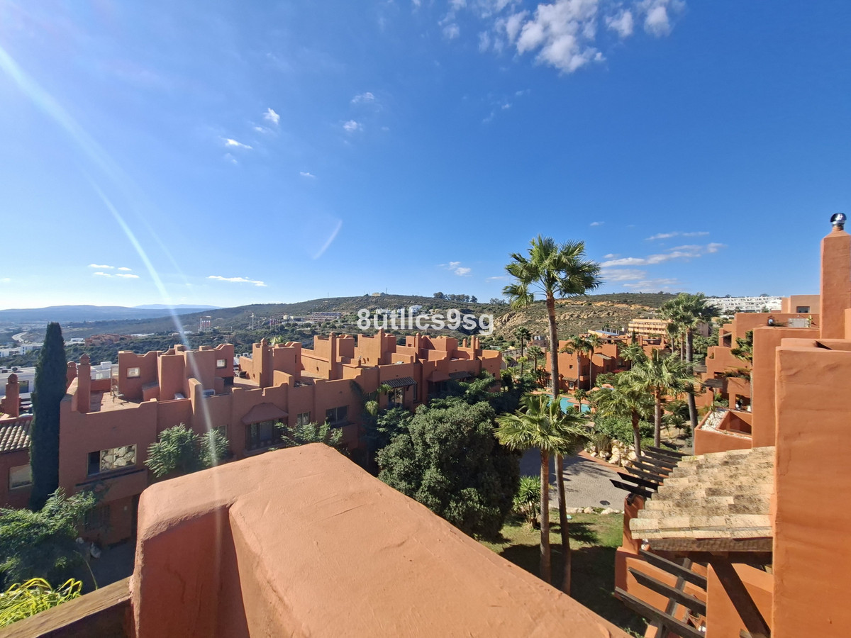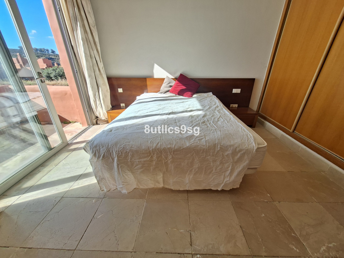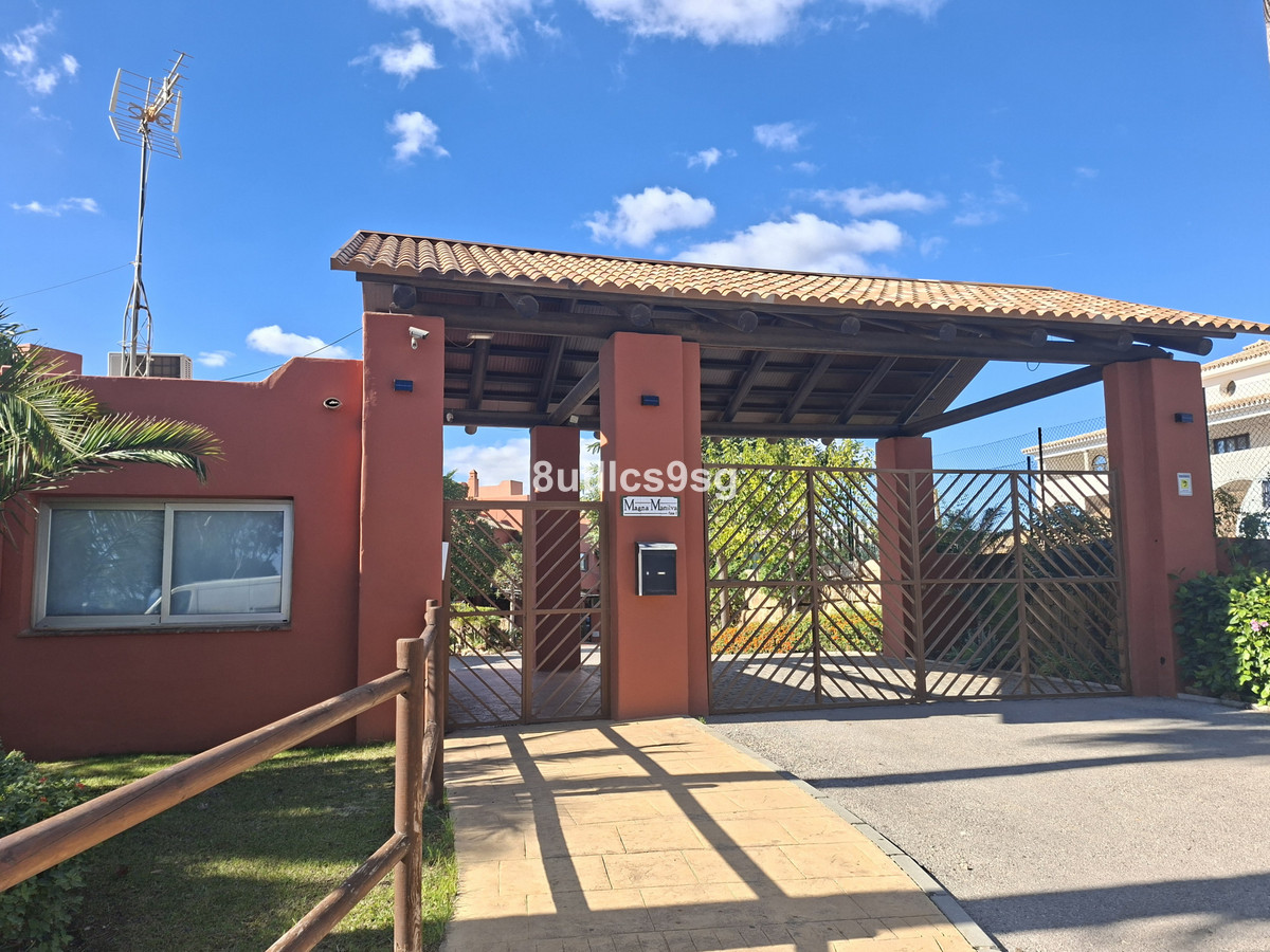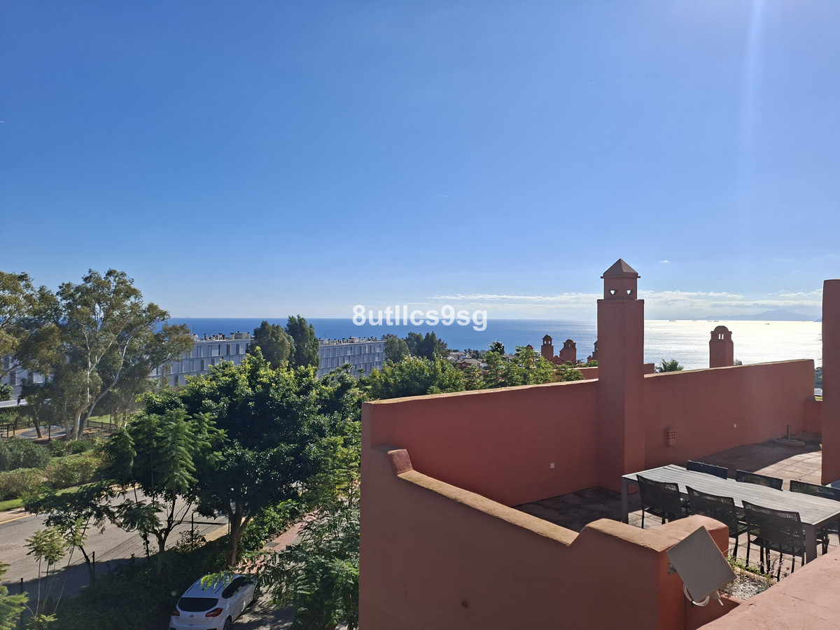 Casa adosada een Bahía de Las Rocas, a dos minutos de Sotogrande, con dos dormitorios con dos baños en suite (el principal con jacuzzi) y un aseo de invitados. Amplio salón con salida a la terraza y vistas al mar, Gibraltar y costa de África. Este adosado cuenta con tres plantas, con un sótano que se puede converitr en un dormitorio, salón de juegos, etc. planta baja, con salón, cocina complétamente equipada y baño de invitados, primera planta con dos dormitorios y subida a un gran solarium con impresionantes vistas. La propiedad cuenta con armarios empotrados, aire acondicionado frío/calor y cochera. La urbanización es cerrada, con bonitos jardines y piscinas para adultos y niños.