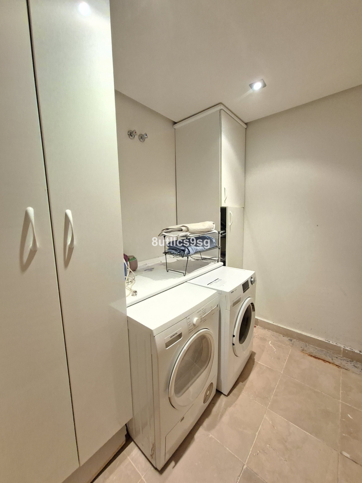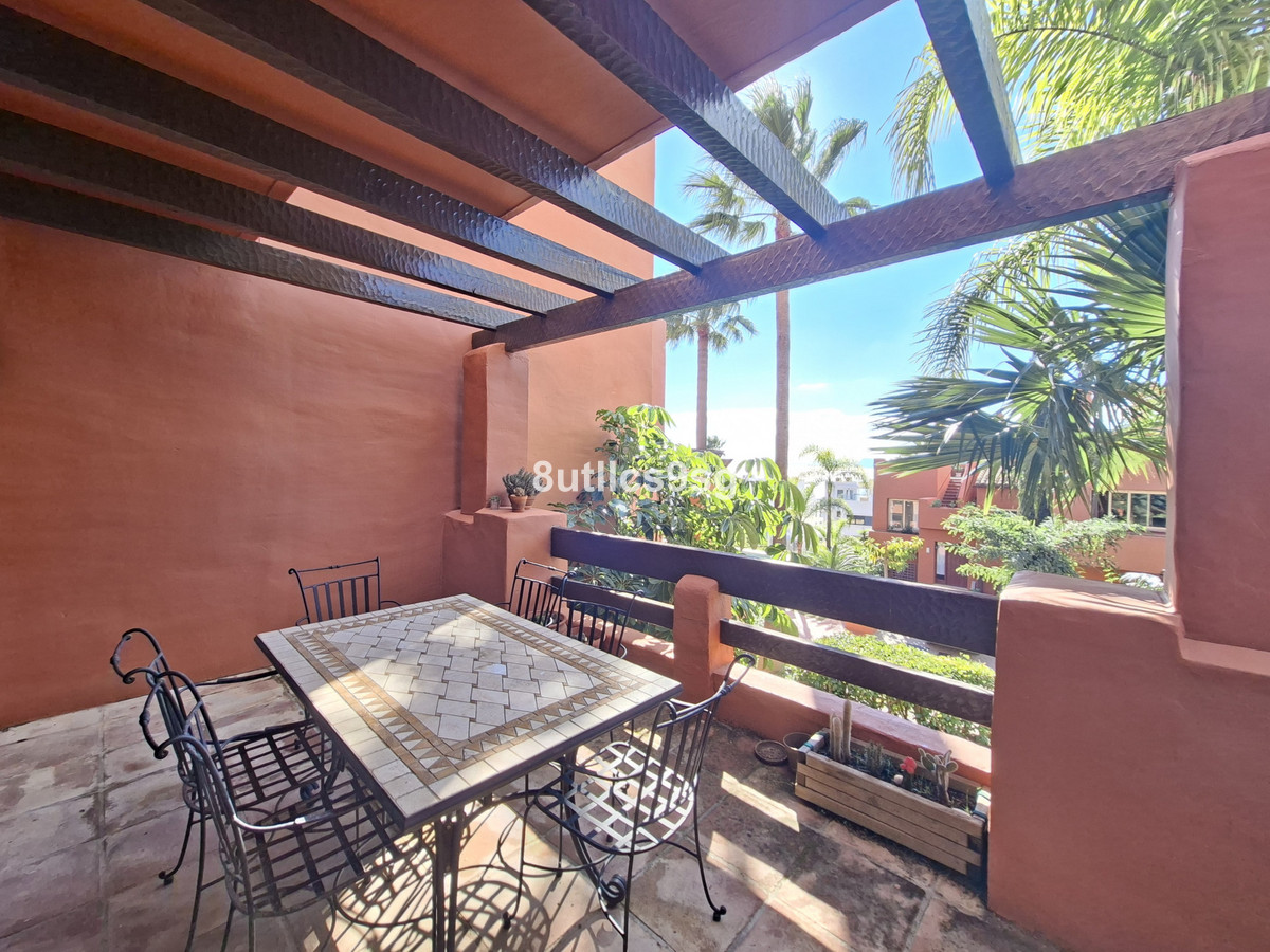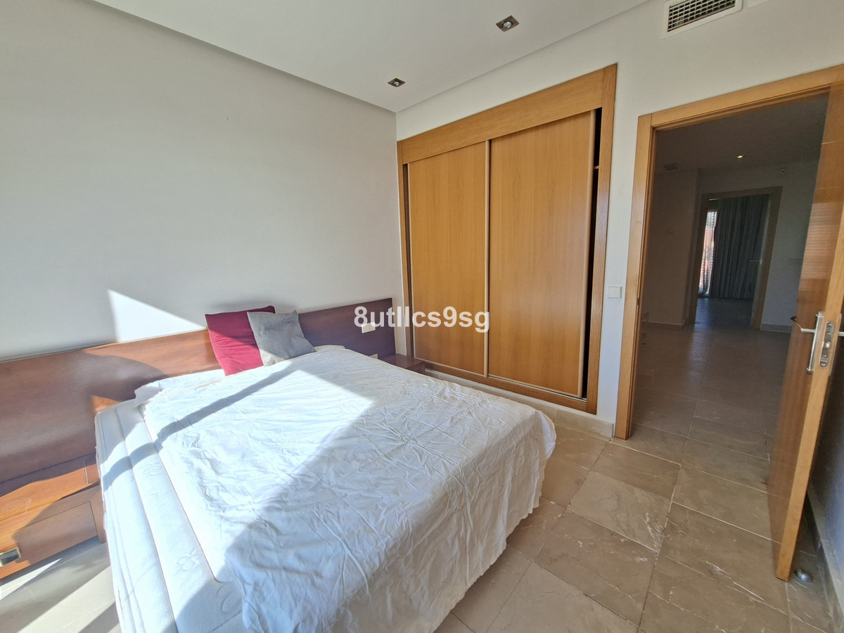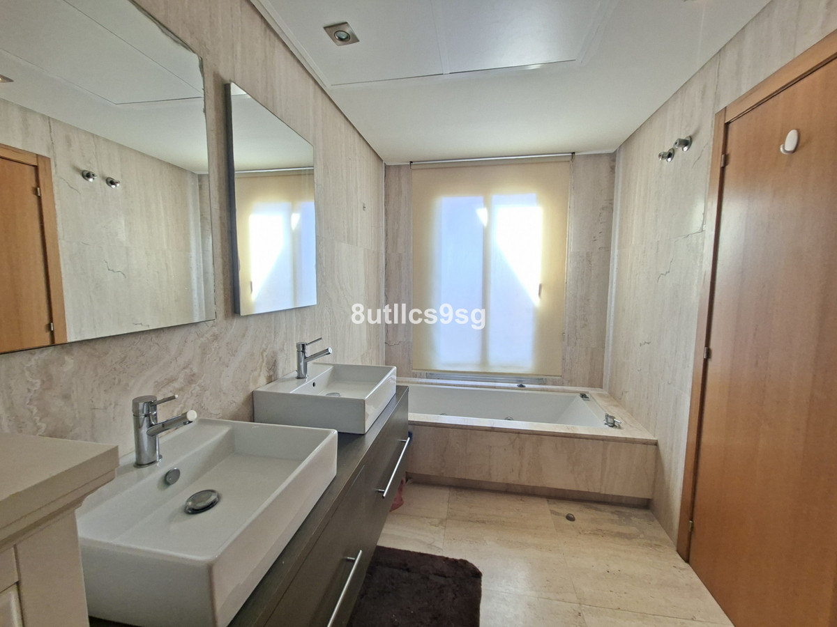 Casa adosada een Bahía de Las Rocas, a dos minutos de Sotogrande, con dos dormitorios con dos baños en suite (el principal con jacuzzi) y un aseo de invitados. Amplio salón con salida a la terraza y vistas al mar, Gibraltar y costa de África. Este adosado cuenta con tres plantas, con un sótano que se puede converitr en un dormitorio, salón de juegos, etc. planta baja, con salón, cocina complétamente equipada y baño de invitados, primera planta con dos dormitorios y subida a un gran solarium con impresionantes vistas. La propiedad cuenta con armarios empotrados, aire acondicionado frío/calor y cochera. La urbanización es cerrada, con bonitos jardines y piscinas para adultos y niños.