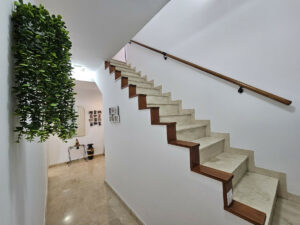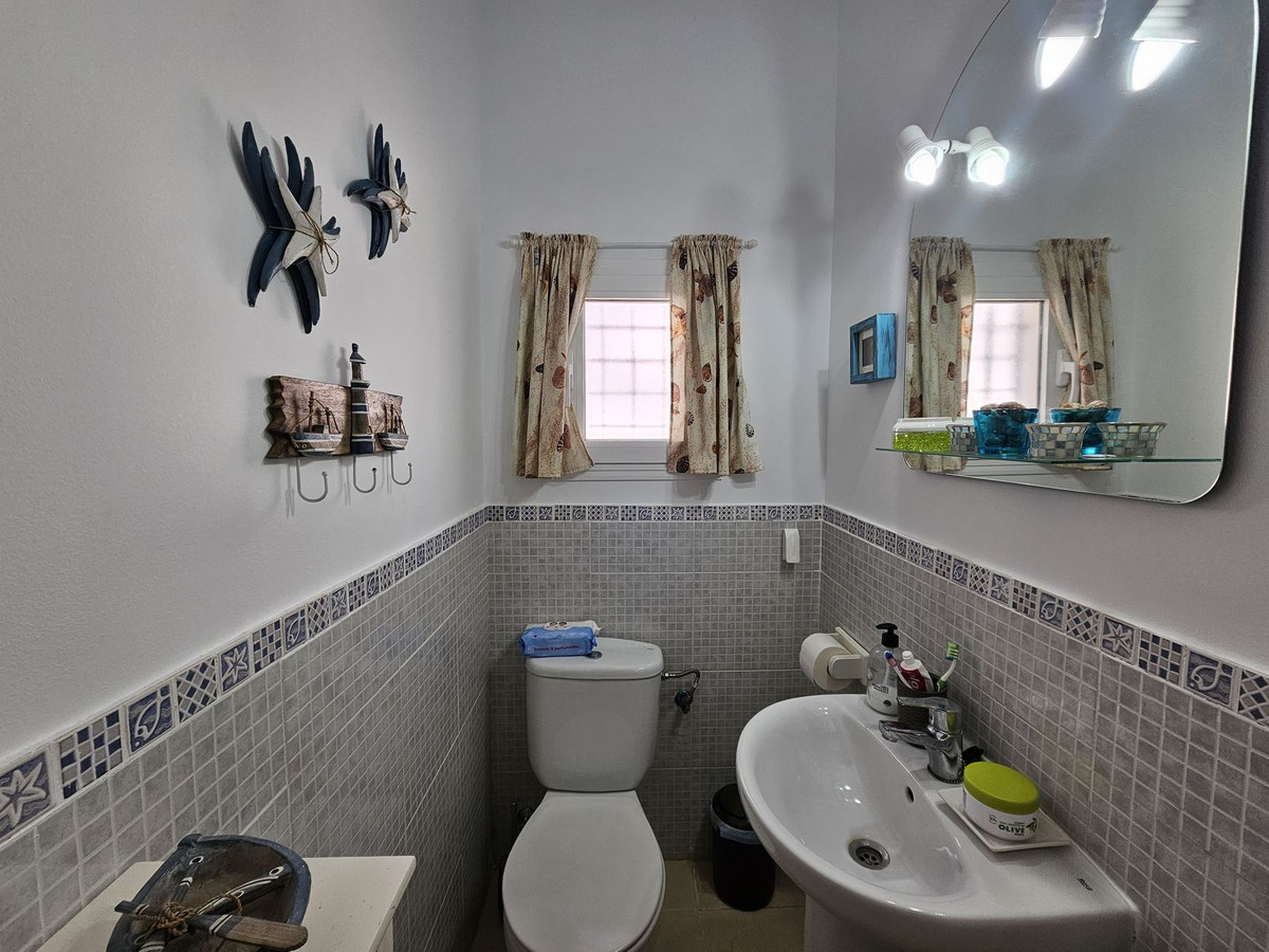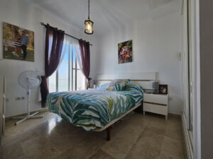 En la planta baja también encontrará dos dormitorios de buen tamaño con armarios empotrados y baños en suite. Además, cuenta con un amplio lavadero y trastero. Las habitaciones son siempre frescas, y todas las estancias y terrazas disponen de persianas y aire acondicionado. En la primera planta, hay un aseo de invitados, cocina independiente, salón-comedor y una terraza de 20 m² orientada al sur. Desde aquí, una escalera de caracol conduce a otra terraza privada de 30 m² con vistas increíbles, ¡incluso al mar! La propiedad incluye una plaza de garaje privada en el precio. ¡Acceda directamente a su hogar desde su propio aparcamiento!