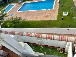 Distribuida con esmero en tres plantas con entrada dual flexible desde la primera o segunda planta, este retiro de 107 m² construidos (89 m² útiles) con orientación sur está en excelente estado de segunda mano, con suelos de mármol en toda la casa y vistas espectaculares. La primera planta presume de dos dormitorios amplios con armarios empotrados, aire acondicionado y baños en suite, ambos abriéndose a una terraza compartida que lleva directamente a las piscinas invitadoras de la urbanización —ideal para chapuzones relajados—. Un pasillo ancho revela una tercera habitación auxiliar versátil, perfecta como suite de invitados o despacho. Este nivel incluye un espacio de almacenamiento dedicado que enlaza con un garaje privado con soluciones de almacenaje integradas, más un armario bajo las escaleras para organización adicional. Sube a la segunda planta, donde espera una cocina independiente totalmente equipada con amplio almacenamiento, junto a un salón-comedor luminoso con aire acondicionado y chimenea acogedora, que fluye hacia una gran terraza con vistas impresionantes —mejorada con toldos para uso todo el año y actualmente acondicionada como zona de barbacoa—. Una escalera de caracol asciende a un solárium privado en la azotea, con potencial infinito como zona chill-out. Un aseo de invitados asegura conveniencia para las visitas sin acceder a áreas privadas.