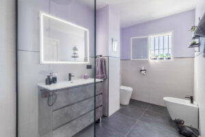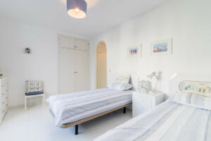 En la planta superior se encuentran dos dormitorios muy espaciosos, ambos con baños renovados en suite. El dormitorio principal cuenta además con un acogedor balcón desde el que se contemplan las panorámicas vistas del Mediterráneo y del Estrecho de Gibraltar.