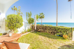 Preciosa casa adosada en primera línea de playa en Manilva Costa, situada en una exclusiva urbanización junto al mar.