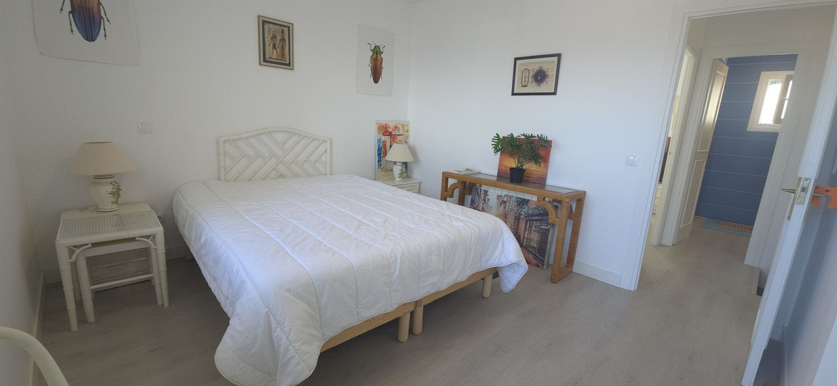 en la planta suoerior, tenemos 2 dormitorios con baño, desde el dormitorio principal, teneos una segunda terraza con vista al mar, aere acondicionado y doble cristal en las ventana.