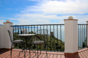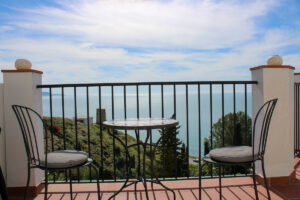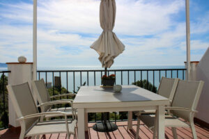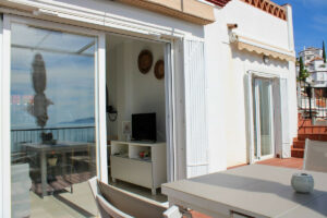 Exclusiva casa adosada con azotea y espectaculares vistas al mar Mediterráneo, ubicada en la cuidada urbanización Ladera del Mar 2, entre Nerja y Torrox Costa. Además de dos maravillosas terrazas de 58,6 m², dispone de dos dormitorios, dos baños, salón y cocina americana. La casa se vende completamente amueblada y decorada con gusto, lista para entrar a vivir. Dispone de licencia turística para alquilar y aparcamiento privado incluido en el precio.