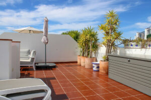 La casa está ubicada de forma privada sin espacio exterior, en la entrada hay espacio para flores o una mesa de café si lo desea. Una vez dentro de la casa a la derecha tenemos una cocina totalmente equipada y abierta al salón. Desde el salón se accede a una de las maravillosas terrazas, donde además hay un toldo para dar sombra durante los días más calurosos.