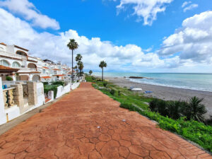 La casa situada en segunda línea de playa, a unos pasos de la bonita senda litoral que conecta toda la costa del sol. Con Sabinillas y el prestigioso Sotogrande a tan solo 5 min en coche donde dispondrás de supermercados, restaurantes y comercios. La propiedad cuenta con ORIENTACIÓN SUR, y la vivienda cuenta con un bonito JARDÍN PRIVADO con un porche donde está situada la entrada a la vivienda que se dispone en 2 plantas más el solárium. En la planta baja encontramos en salón comedor con cocina abierta completamente equipada, y además dispone de un aseo. En la primera planta encontramos los 2 dormitorios, un dormitorio principal y otro individual, además de compartir un baño completo equipado con ducha. En la última planta encontramos el solárium que tiene vistas parciales al mar, y cuenta con una habitación que esta siendo utilizada lavadero. La casa disfruta de unas bonitas zonas ajardinadas y piscina comunitaria. ¡UNA GRAN OPORTUNIDAD DE VIVIR EL LUJO DE VIVIR A PIE DE MAR! ¡RECOMENDAMOS SU VISITA!