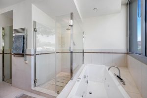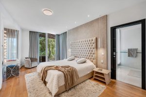Dos amplios dormitorios, cada uno con su propio baño en suite de lujo, además de un baño adicional para invitados.