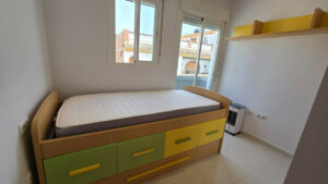 La vivienda dispone de dos amplias terrazas donde podrás disfrutar de estupendas vistas al mar y con la opción de crear una tercera habitación. En su interior encontrarás una habitación doble acogedora junto a otra sencilla ideal para niños, visitas, despacho o como espacio adicional. Además, hay un baño completo más un aseo que brindan funcionalidad extra. Dispone de zona de lavandería en la planta superior.