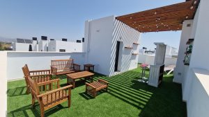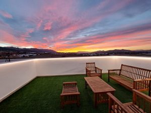 Segunda planta: Espectacular terraza solárium estilo chill-out, con vistas panorámicas 360°, zona de relax y espacio de bar, perfecta para disfrutar del clima mediterráneo durante todo el año.