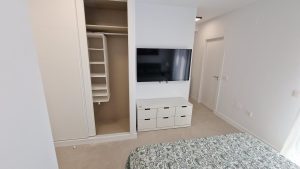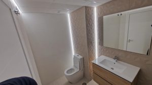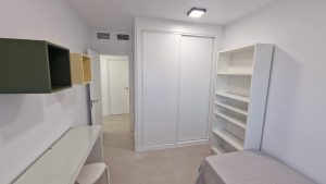 Primera planta: Zona de descanso compuesta por 3 dormitorios y 2 baños. El dormitorio principal cuenta con vestidor y baño en suite con plato de ducha.