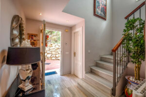 El acceso a la propiedad es fácil y seguro, con aparcamiento justo encima de la casa y tres entradas cerradas, cada una con código o intercomunicador. Tanto si recibe invitados como si regresa a casa después de una excursión, apreciará la cuidada distribución y la privacidad que ofrece esta casa. Al entrar, le recibirá un amplio y diáfano recibidor que marca la pauta para el resto de la casa. A la derecha, encontrará una cocina modernizada con gusto, completamente reformada con acabados contemporáneos. Un aseo de invitados y un práctico armario se encuentran justo al lado del recibidor.