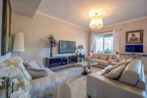 Al pasar a la sala de estar principal, encontrará un salón-comedor de planta abierta inesperadamente espacioso. La luz natural entra a raudales a través de las amplias puertas correderas de cristal, que dan a una amplia terraza con impresionantes vistas a las montañas y a La Motta Torre, un espacio tranquilo y privado para disfrutar de su café matutino o relajarse con un cóctel al atardecer.