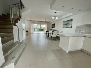 Nueva casa adosada de tres dormitorios con orientación sur en Paraíso Bellevue, en El Paraíso, en la Nueva Milla de Oro, a poca distancia en coche de la playa y de todas las comodidades de ocio. El complejo cuenta con jardines fantásticamente mantenidos y una gran piscina comunitaria estilo laguna. En el nivel principal hay un salón comedor con chimenea y puertas que dan a la terraza y al jardín privado; Cocina abierta junto con barra de desayuno y aseo de invitados. En el nivel superior se encuentra la suite principal con acceso a la terraza privada y dos habitaciones de invitados que comparten un baño. También hay un amplio solárium con vistas parciales al mar ya la montaña. Otras características incluyen suelos de mármol, armarios empotrados y aire acondicionado frío y caliente