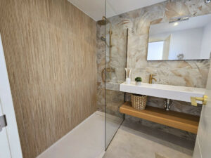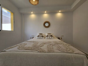 En la planta baja, encontrarás un elegante salón diáfano con cocina integrada, un acogedor dormitorio y un moderno baño. Desde aquí, se accede a una impresionante terraza parcialmente cubierta con zona chill-out y piscina privada, ideal para disfrutar de los días soleados. La entrada a la casa también cuenta con otro pequeño espacio exterior. La primera planta ofrece dos dormitorios más, con terraza privada en el dormitorio principal y un segundo baño, perfecto para la comodidad de todos. El garaje doble privado y cerrado se encuentra en el sótano.