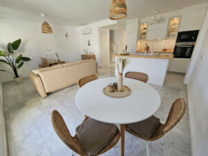 Esta espectacular casa adosada con orientación sureste ha sido renovada con materiales de alta calidad y decorada con un gusto exquisito, ofreciendo un estilo de vida inigualable. Con 163 m² construidos y 138 m² útiles, la casa se distribuye en tres plantas, ofreciendo espacios amplios y luminosos para toda la familia.