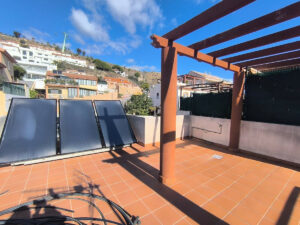 En la planta baja está la cocina independiente de gran tamaño, ideal para familias y con espacio para comedor diario.Tambien el salón-comedor amplio y luminoso, con salida directa a una terraza-jardin soleada con vistas abiertas al mar. En está planta se encuentra un aseo.