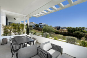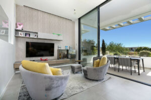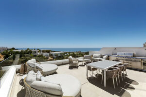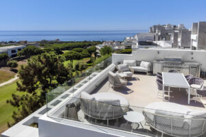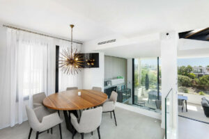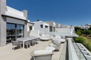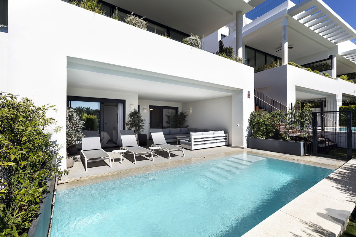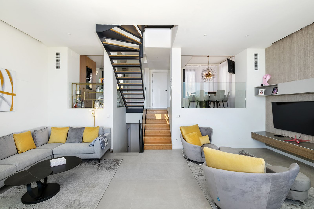 Impresionante adosado semidinámico en primera línea del campo de golf de Cabopino, ubicado en una comunidad cerrada a solo 3 minutos en coche de la mejor playa de arena de Marbella y de una hermosa marina.Esta hermosa propiedad de planta abierta disfruta de techos de doble altura en el salón con vistas panorámicas sobre el golf y las copas de los árboles hacia el impresionante azul del Mediterráneo.La casa tiene su propia piscina privada, el lugar perfecto para refrescarse en total privacidad mientras se toma el sol. También cuenta con una increíble terraza en la azotea que disfruta de impresionantes vistas panorámicas y una cocina al aire libre.La casa tiene menos de 3 años y la cocina está equipada con electrodomésticos de alta calidad y está amueblada a un nivel extremadamente alto. Con 3 dormitorios en suite y un baño para invitados, ¡esta es la propiedad perfecta para que su familia disfrute de todas las mejores cosas que Marbella tiene para ofrecer!¡Debe verse para ser apreciada!