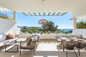 Disfrute de impresionantes vistas al mar y de una ubicación en primera línea del Cabopino Golf. La ubicación es perfecta, cerca de supermercados, la playa, el puerto de Cabopino y colegios, lo que la hace ideal como hogar familiar. Cabopino también está estratégicamente situado cerca de Marbella, Fuengirola y el aeropuerto.