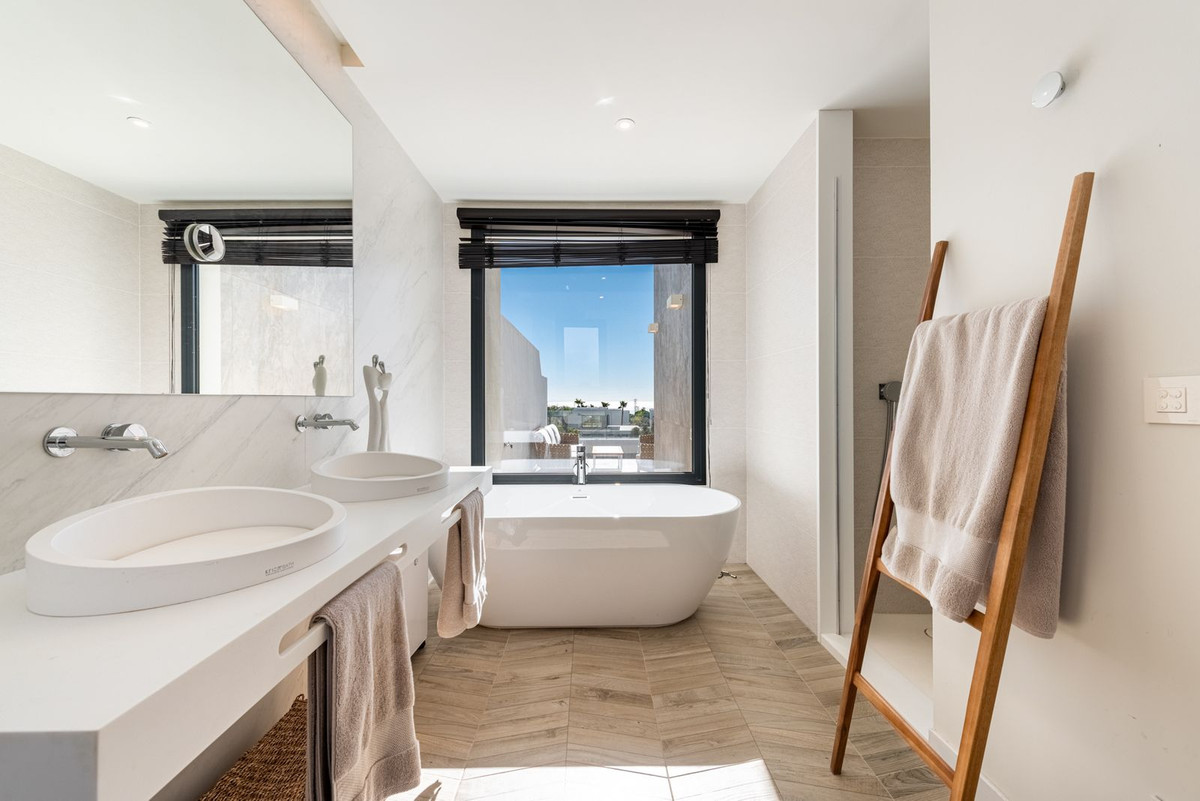 La vivienda cuenta con 3 dormitorios, todos con baño en suite, un aseo para invitados y un práctico trastero/lavadero. El salón y la cocina de concepto abierto se abren directamente a una maravillosa terraza, mientras que los grandes ventanales de suelo a techo llenan la casa de luz natural y crean una sensación de amplitud y lujo.