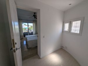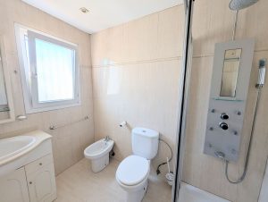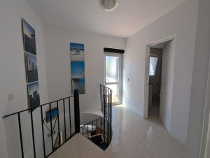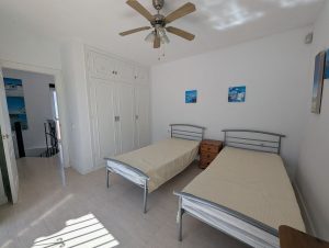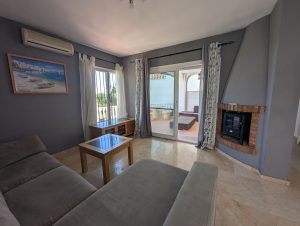 La casa se distribuye en dos plantas y ofrece tres amplios dormitorios y dos baños. Dos de los dormitorios de la planta superior dan a una terraza privada con preciosas vistas a los jardines comunitarios, la piscina e incluso al mar Mediterráneo.