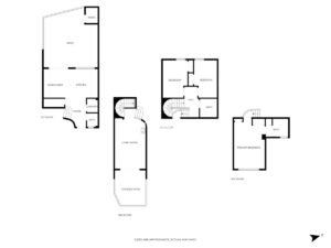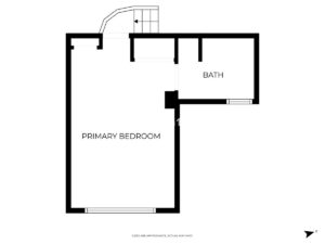 Primera planta: Tres dormitorios, incluido el principal con baño en suite, y un baño común para el resto de habitaciones.